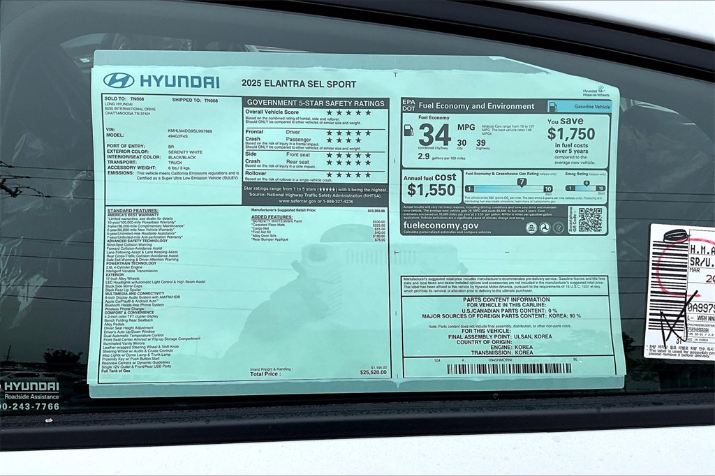 2025 Hyundai Elantra SEL Sport Serenity White Price includes: $1250 - Hyundai HMF Dealer Choice: $1250 discount. $44.09 per $1000 financed. Available to well qualified buyers who finance through Hyundai Motor Finance. H704. Exp. 01/02/2026