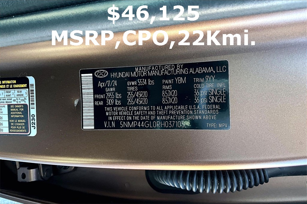 VIN: 5NMP44GL0RH037105 | Stock #: 037105A | Mileage: 22,126