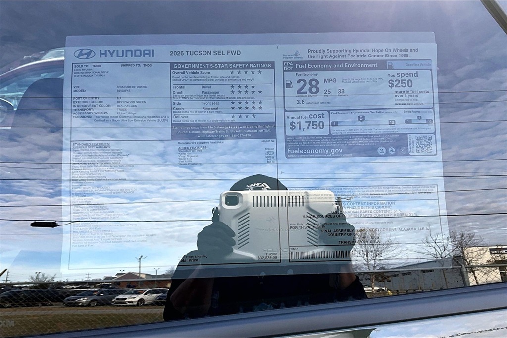 2026 Hyundai Tucson SEL Rockwood Green Price includes: $2750 - Hyundai HMF Dealer Choice : $2750 discount. $44.09 per $1000 financed. Available to well qualified buyers who finance through Hyundai Motor Finance. H704. Exp. 01/02/2026