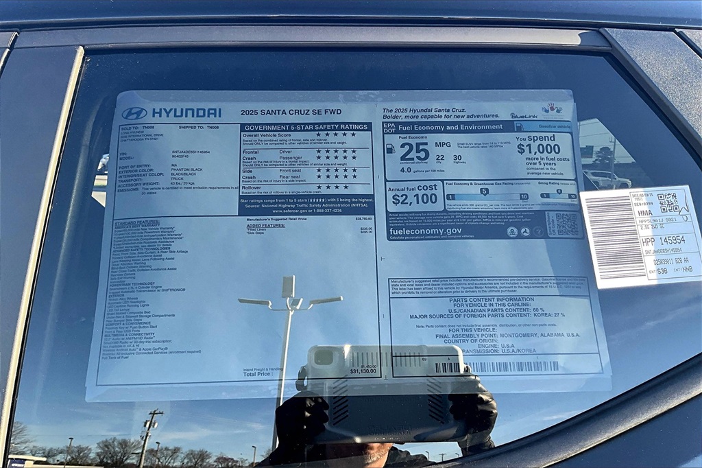 2025 Hyundai Santa Cruz SE Phantom Black Price includes: $250 - Hyundai HMF Dealer Choice : $250 discount. $44.05 per $1000 financed. Available to well qualified buyers who finance through Hyundai Motor Finance. H704. Exp. 02/02/2026