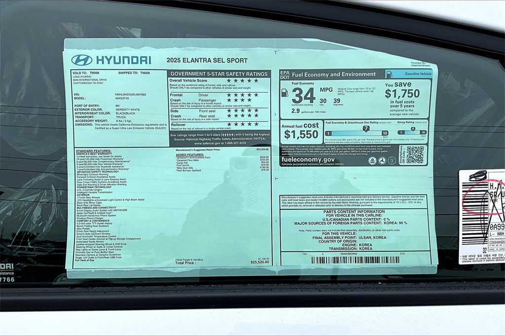 2025 Hyundai Elantra SEL Sport Serenity White Price includes: $750 - Hyundai HMF Dealer Choice : $750 discount. $44.05 per $1000 financed. Available to well qualified buyers who finance through Hyundai Motor Finance. H704. Exp. 02/02/2026