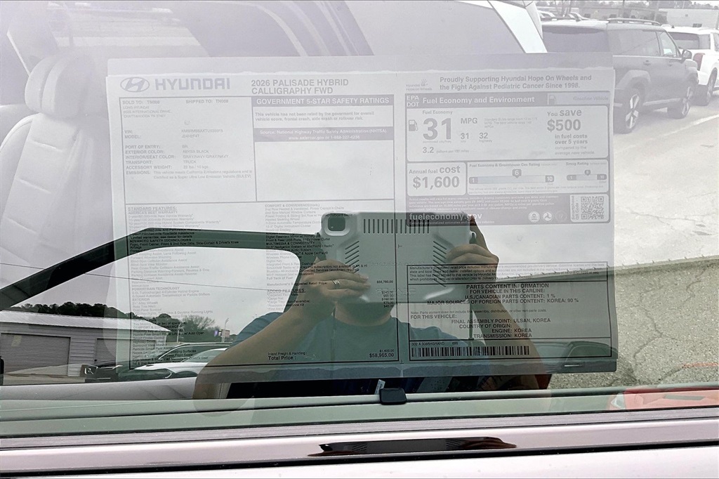 2026 Hyundai Palisade Hybrid Calligraphy Abyss Black Pearl Price includes: $500 - Hyundai HMF Dealer Choice : $500 discount. $44.05 per $1000 financed. Available to well qualified buyers who finance through Hyundai Motor Finance. H704. Exp. 02/02/2026