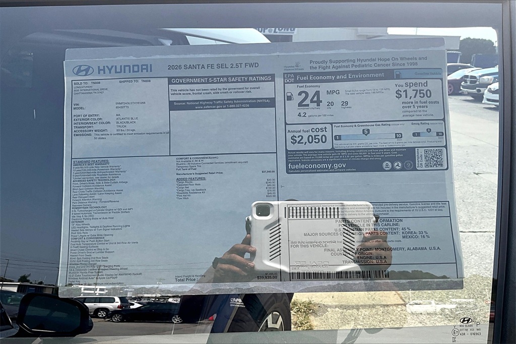 2026 Hyundai Santa Fe SEL Atlantis Blue Price includes: $1500 - Hyundai HMF Dealer Choice : $1500 discount. $44.05 per $1000 financed. Available to well qualified buyers who finance through Hyundai Motor Finance. H704. Exp. 02/02/2026
