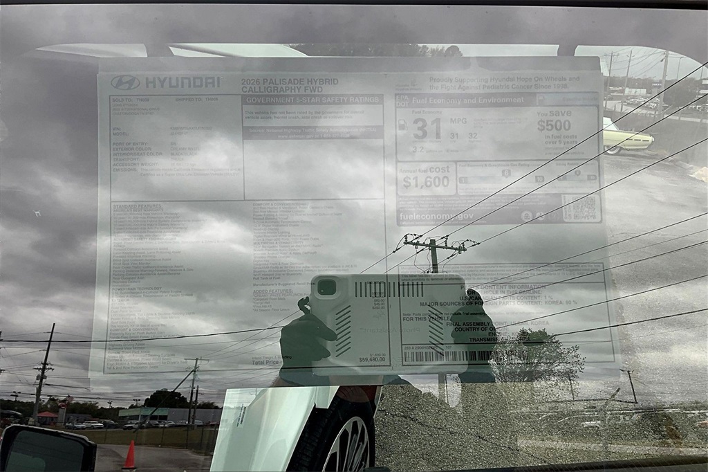 2026 Hyundai Palisade Hybrid Calligraphy Creamy White Pearl Price includes: $500 - Hyundai HMF Dealer Choice : $500 discount. $44.05 per $1000 financed. Available to well qualified buyers who finance through Hyundai Motor Finance. H704. Exp. 02/02/2026
