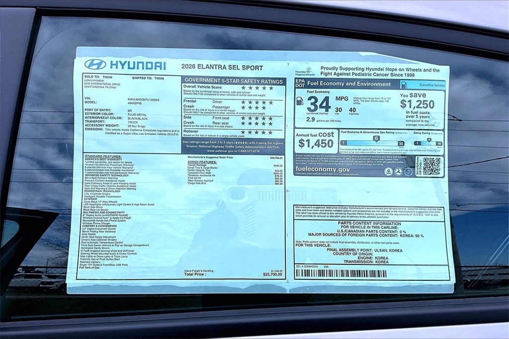 2026 Hyundai Elantra SEL Sport Fluid Metal Price includes: $500 - Hyundai HMF Dealer Choice : $500 discount. $44.05 per $1000 financed. Available to well qualified buyers who finance through Hyundai Motor Finance. H704. Exp. 02/02/2026