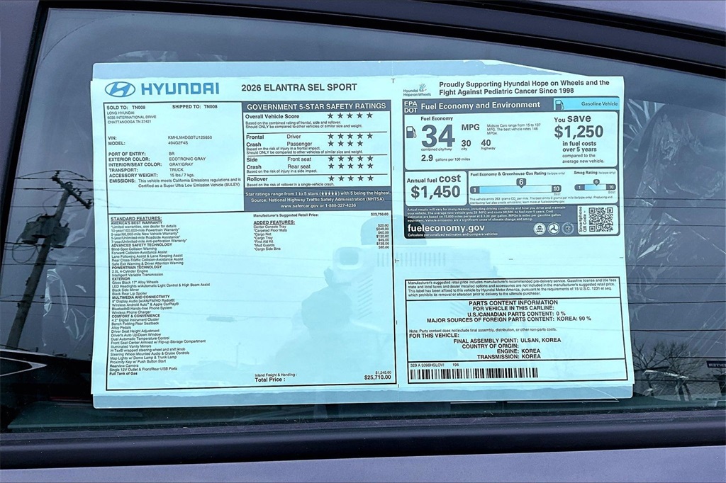 2026 Hyundai Elantra SEL Sport Ecotronic Gray Price includes: $500 - Hyundai HMF Dealer Choice : $500 discount. $44.05 per $1000 financed. Available to well qualified buyers who finance through Hyundai Motor Finance. H704. Exp. 02/02/2026
