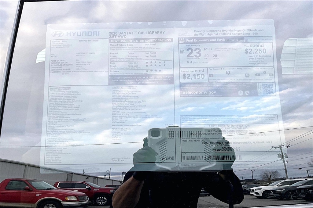 2026 Hyundai Santa Fe Calligraphy Ecotronic Gray Price includes: $1500 - Hyundai HMF Dealer Choice : $1500 discount. $44.05 per $1000 financed. Available to well qualified buyers who finance through Hyundai Motor Finance. H704. Exp. 02/02/2026