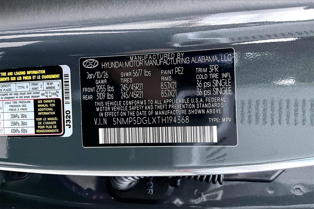 - Condition: New Mileage: 5 Stock #: 194368 VIN: 5NMP5DGLXTH194368 Dealer Lot: Long Hyundai
