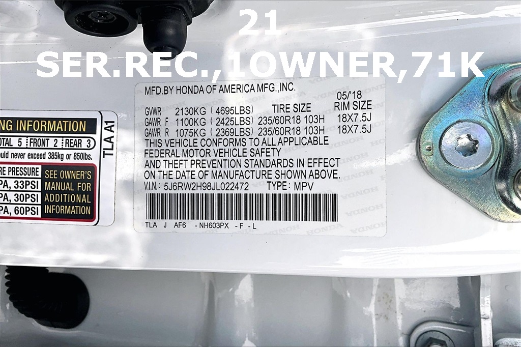 VIN: 5J6RW2H98JL022472 | Stock #: 022472A | Mileage: 71,763