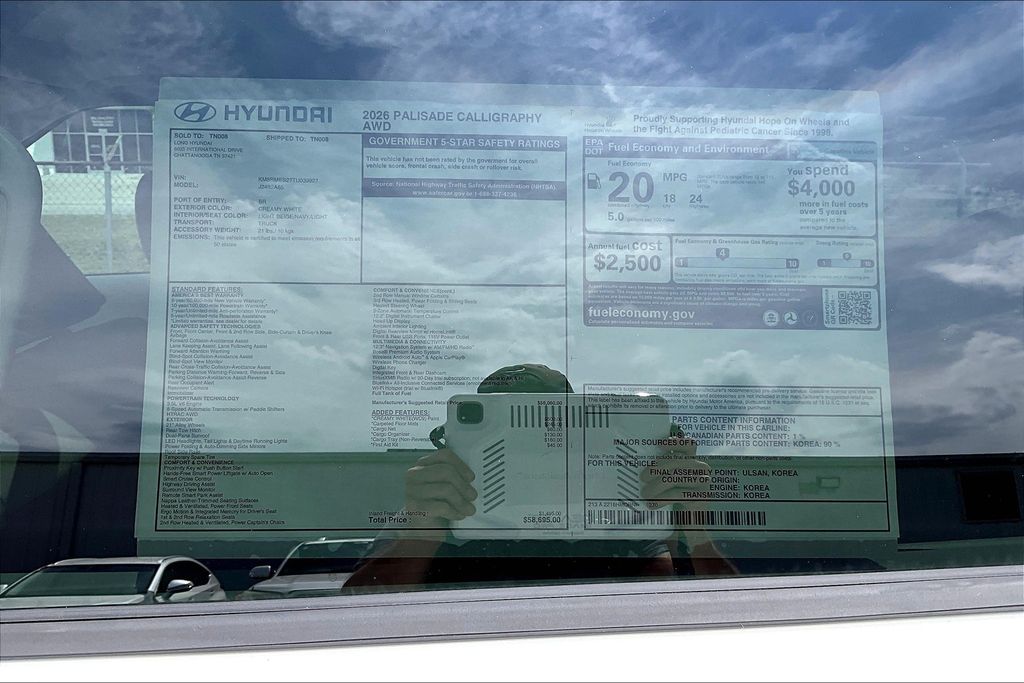 2026 Hyundai Palisade Calligraphy Creamy White Pearl Price includes: $1000 - Hyundai HMF Dealer Choice : $1000 discount. $44.05 per $1000 financed. Available to well qualified buyers who finance through Hyundai Motor Finance. H704. Exp. 03/31/2026 $2000 - Sales Event Cash. Exp. 03/31/2026