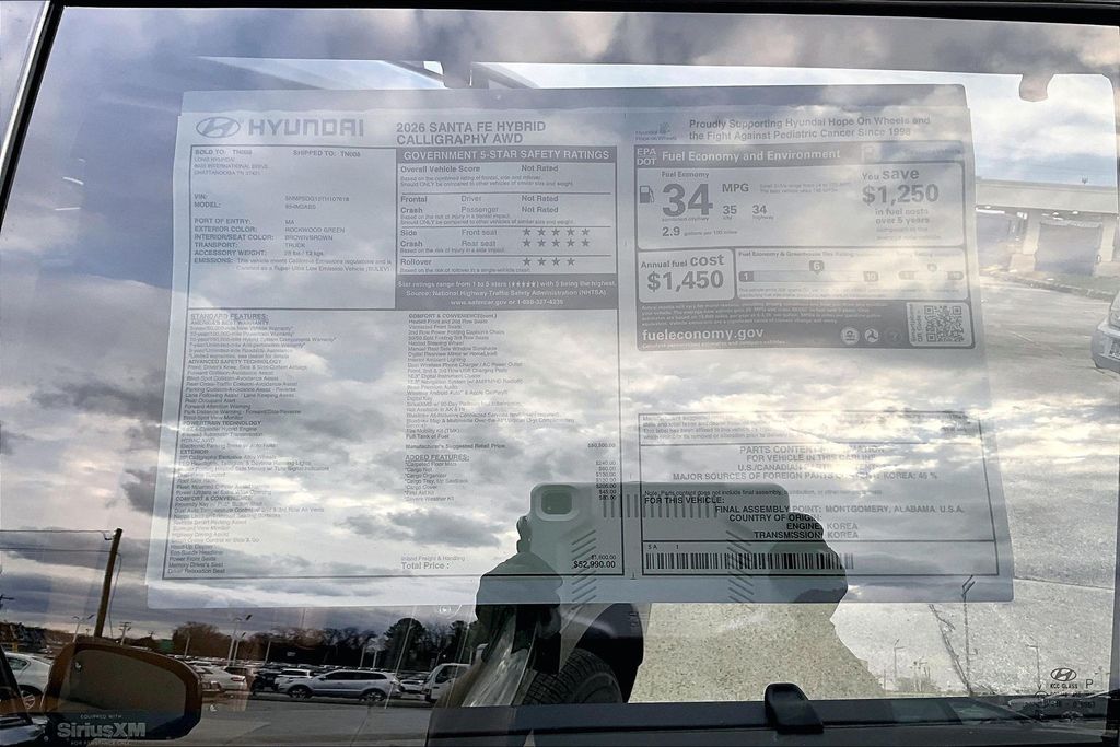 2026 Hyundai Santa Fe Hybrid Calligraphy Rockwood Green Price includes: $4000 - Hyundai HMF Dealer Choice : $4000 discount. $44.05 per $1000 financed. Available to well qualified buyers who finance through Hyundai Motor Finance. H704. Exp. 03/31/2026
